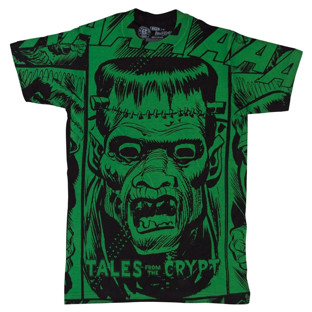 Officially licensed Tales From The Crypt Jumbo creature feature print tee featuring an all over frankenstein monster print on the front. Made by monsters in the USA.Â
