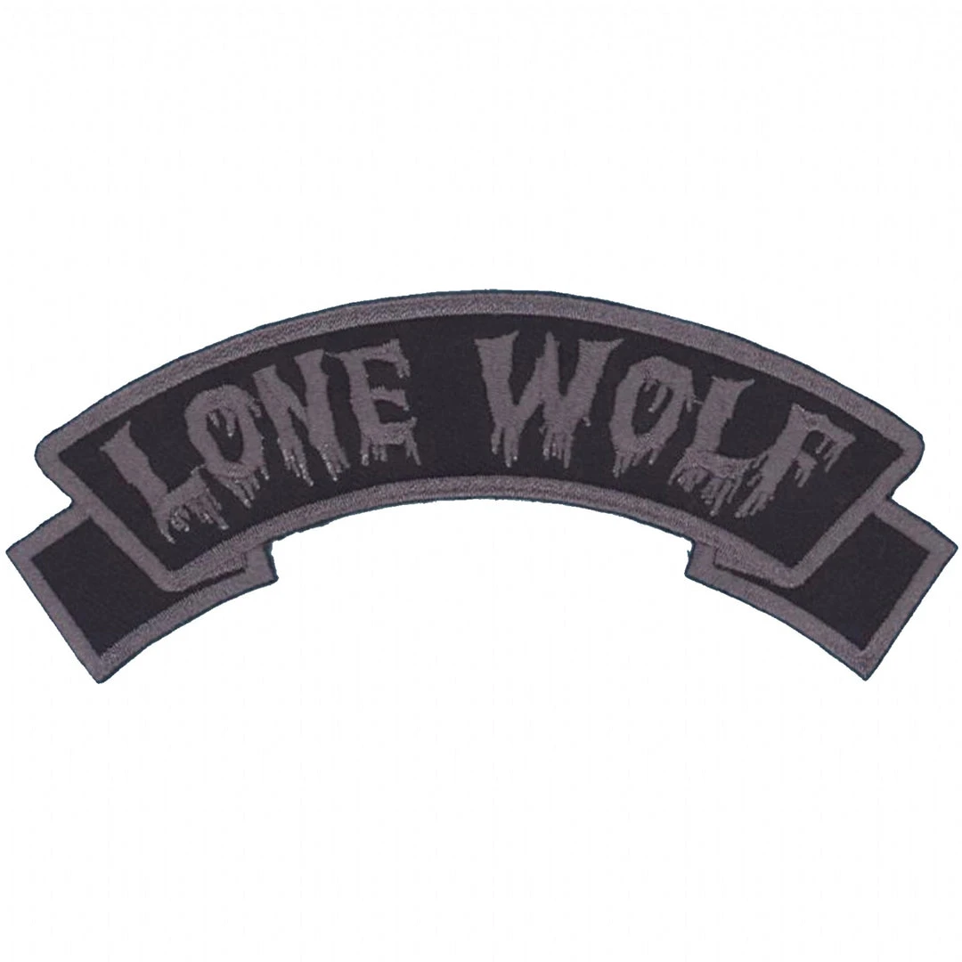 Kreepsville 666 lone wolf arch patch, embroidered iron on patch, size approx 5 in wide x 2 in high 12cm w x 5cm h. See our patch instruction page for application help.