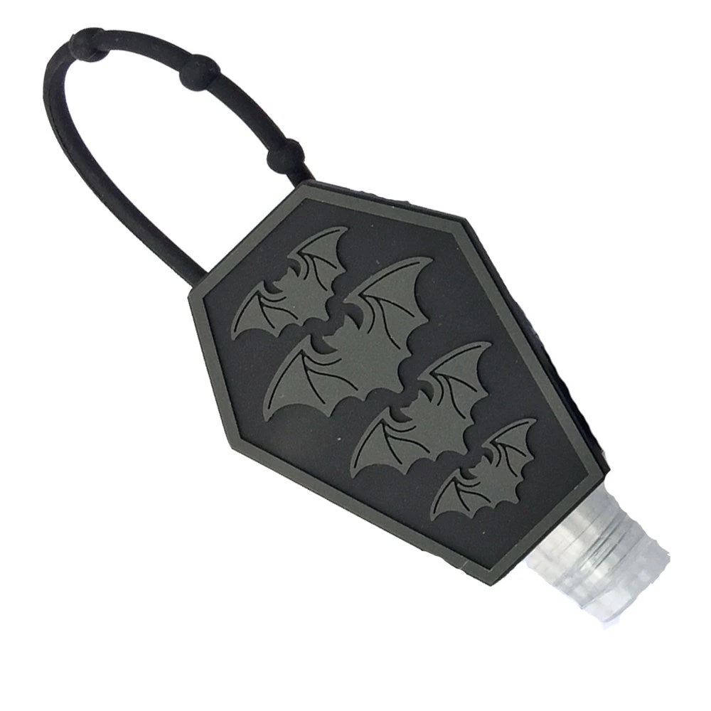 Take your hand sanitizer everywhere in style with our Bat Coffin Hand Sanitizer Holder, clip it onto the outside of your bag so you don’t have to dig through your bag with unclean hands. Hand Sanitizer Holder includes  bat coffin holder and a empty refillable bottle that can be filled with your choice of hand sanitizer.Made out of Soft Silicone outside with a refillable plastic screw-top bottle inside. Holder measures approx 3.5 inches long by 2.5 inches wide